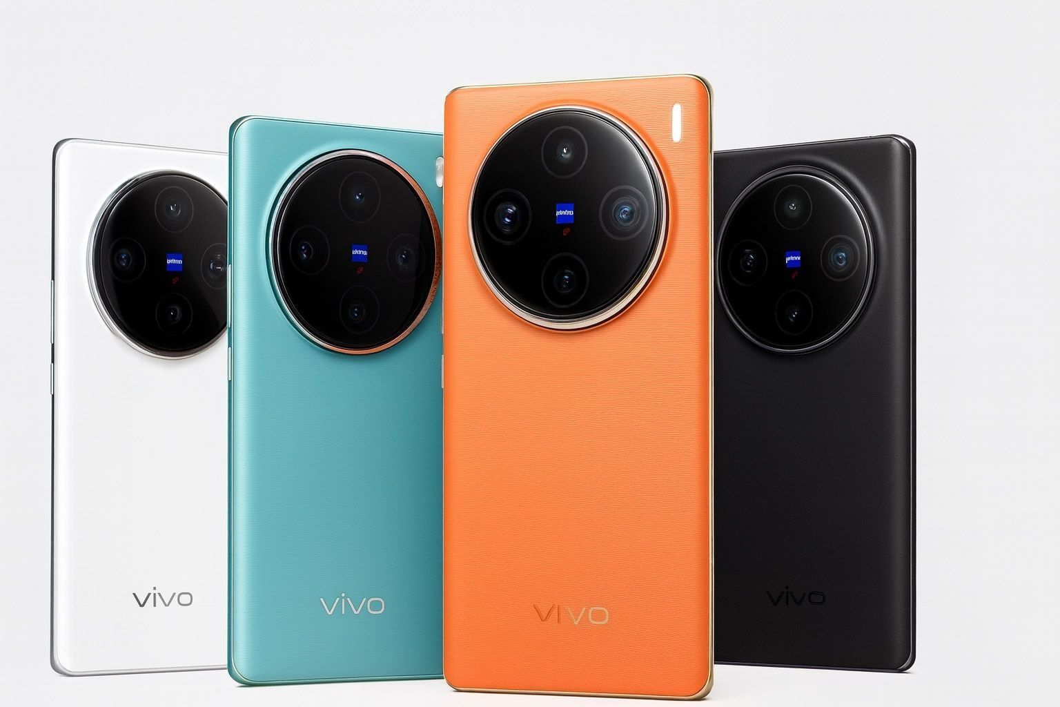 The Vivo X100 Pro+ (also referred to as the X100 Ultra in some reports) continues Vivo’s partnership with Zeiss and sports a sleek yet striking look. Leaked sketches indicate a curved-edge 6.78-inch OLED display with almost non-existent bezels – if the final design matches the leak, the X100 Pro+ could “break all records” for thin bezels, essentially all-screen up front. The display is expected to be QHD+ (1440p) at 120Hz refresh rate, delivering vibrant colors and sharp detail. A small centered punch-hole houses the selfie camera. On the back, Vivo uses a prominent “oreo” circular camera island in the center, proudly marked with ZEISS branding. This module contains multiple lenses (more on those later) and an LED flash, arranged in an asymmetrical “Sunset Eclipse” layout as Vivo calls it. The phone’s build features an aluminum frame and is IP68-rated for dust/water resistance. Vivo is offering the X100 Pro+ in both glass and vegan leather finishes – three models will have glass backs (white, black, and blue), while an orange variant will use a leatherette back for a classy touch. Overall, Vivo’s design language is elegant and ergonomic, with the curved display and premium materials, yet with a flair of color in the special edition.